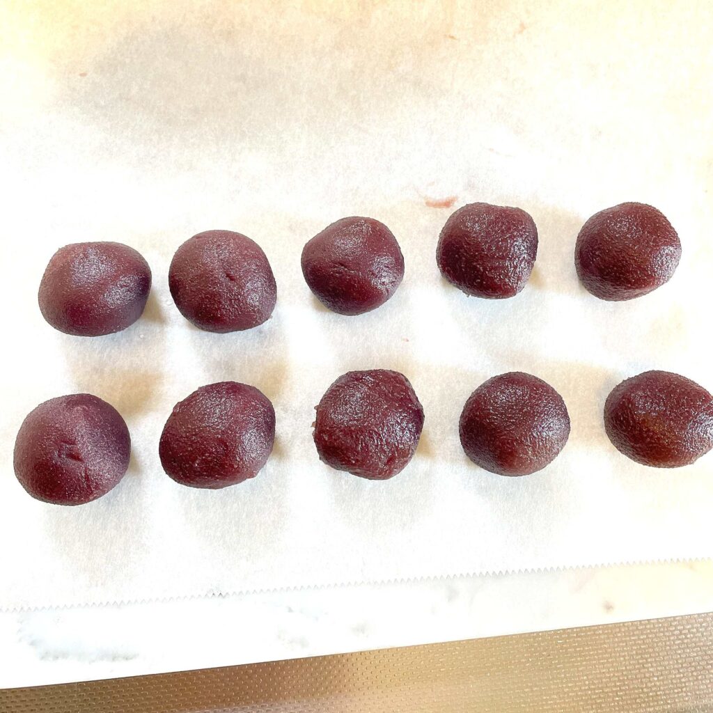 そして10分間の蒸らし時間に、あんこを丸めておきましょう。