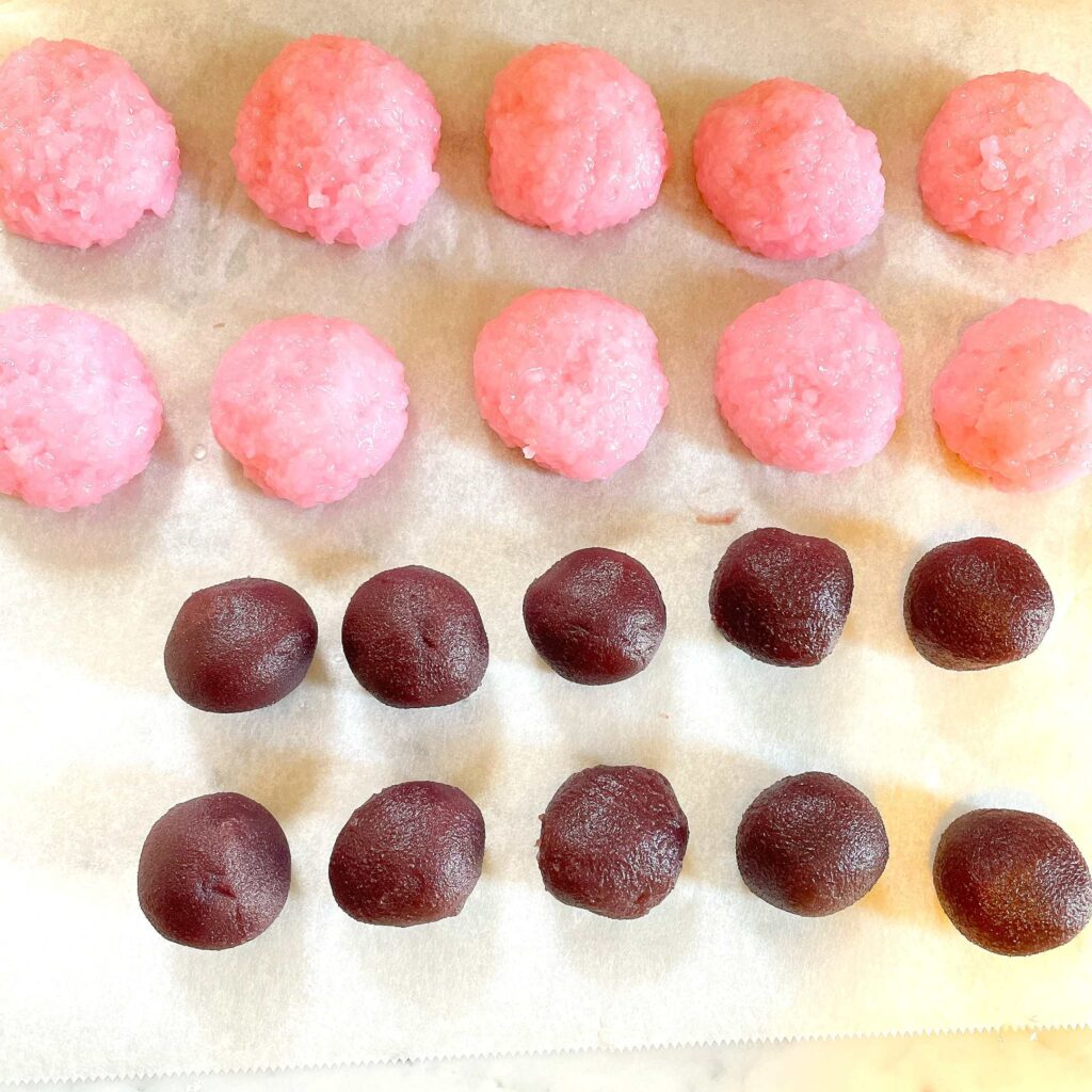手があんこでベチャベチャになるのでは…と心配してましたが、意外とまとまりやすく手につきづらかったので、簡単に丸め終えることができました。