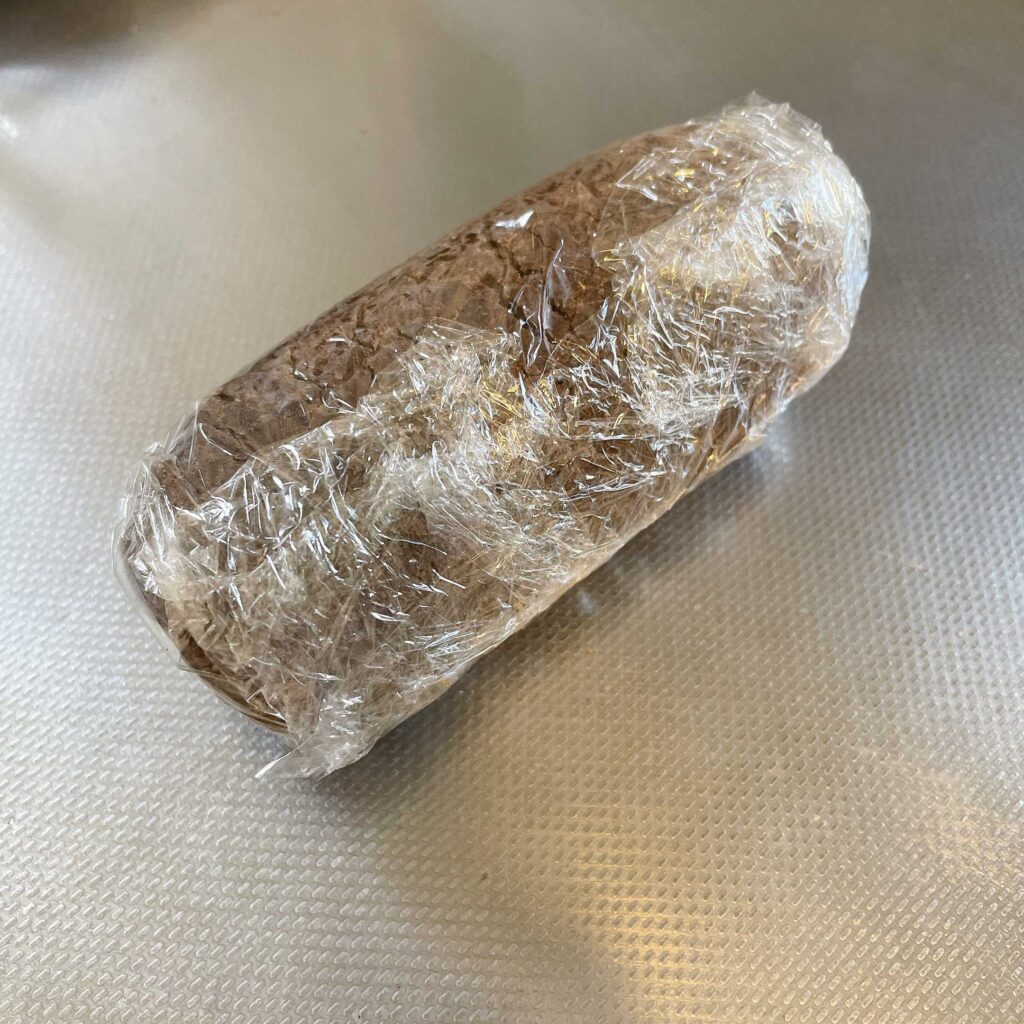 まとまったら、ラップに包み筒状にして冷蔵庫に冷やします。
