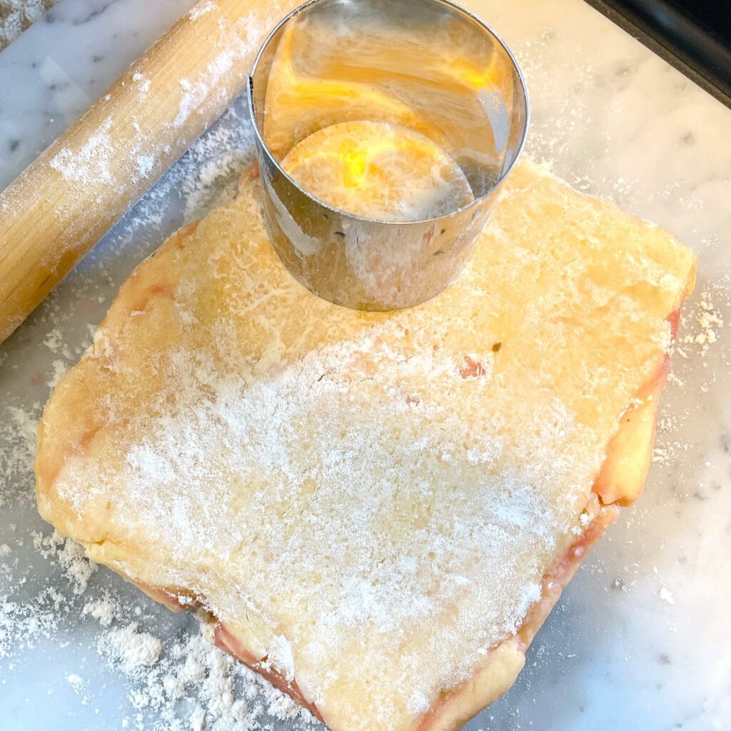 ラップを取り、丸型やお好みの型で型抜きします。包丁でカットしてもらってもOKです。