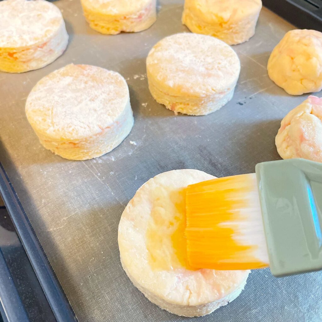 表面に残しておいた卵を塗り、予熱したオーブンへ。 15分~17分焼きましょう。焼き上がりは底を見てしっかり焼けていたらOKです。
