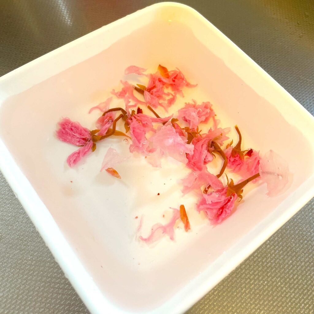 焼いている間に、桜の塩漬けを軽く洗って多めの水に浸しておきましょう。