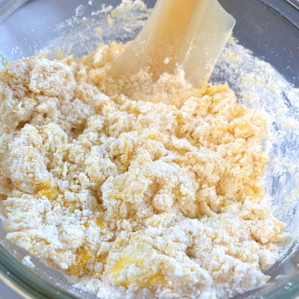 ゴムベラでさっくり混ぜて、ひとまとまりにしていきます。