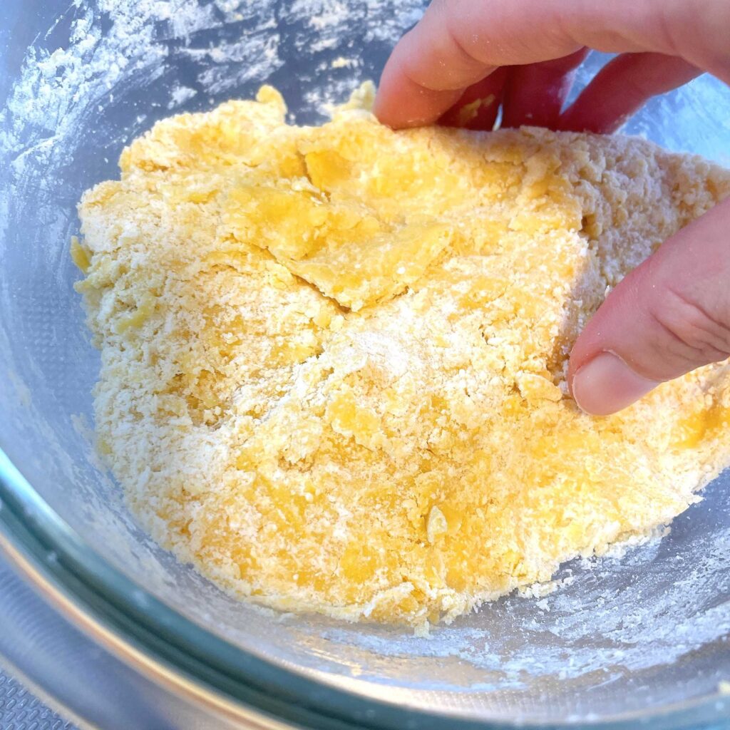 まとまった生地をラップに包んで、冷蔵庫で10分〜20分ほど休ませます。