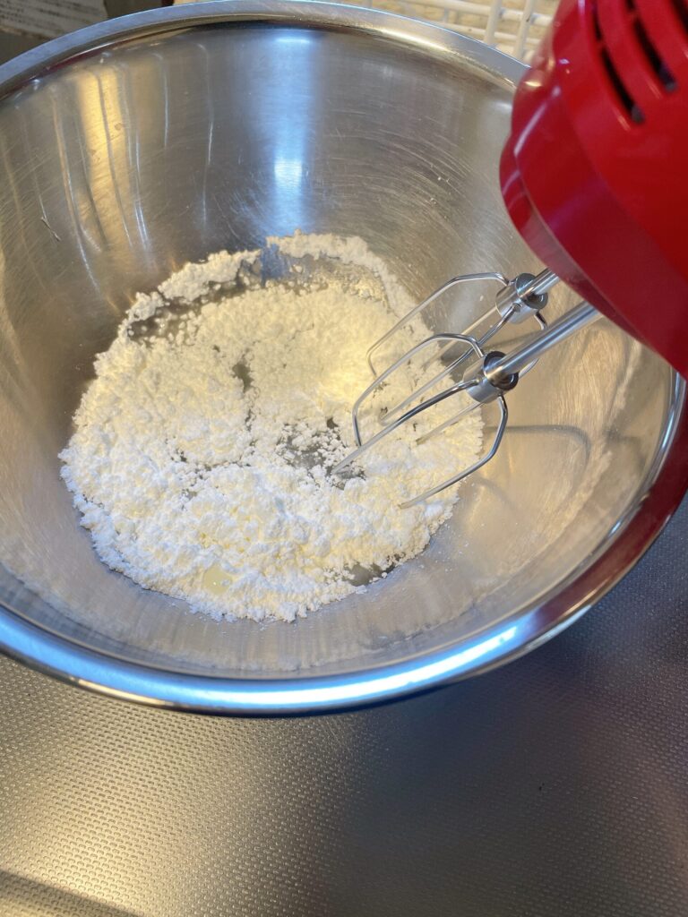 さてまずは、マカロンミックスと水をハンドミキサーで混ぜていきます。