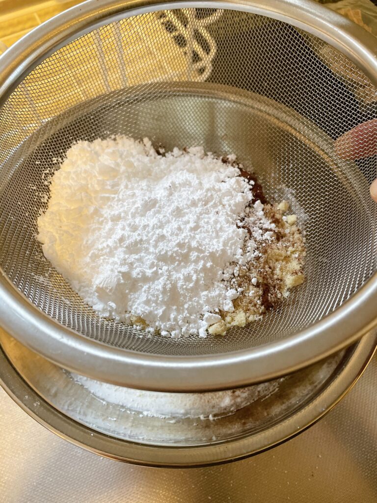 目の細かいふるいよりも少し目が粗めのボウルなどでふるうと楽だよ。